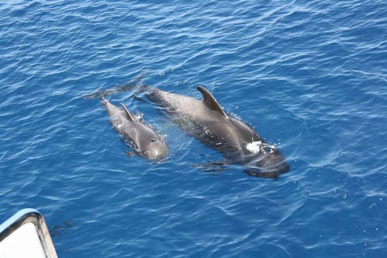 Indische Grindwale Mutter und Kalb Globicephala macrorhynchus (Gray, 1846) im Süden von Teneriffa Canarische Inseln Esp. April 2010