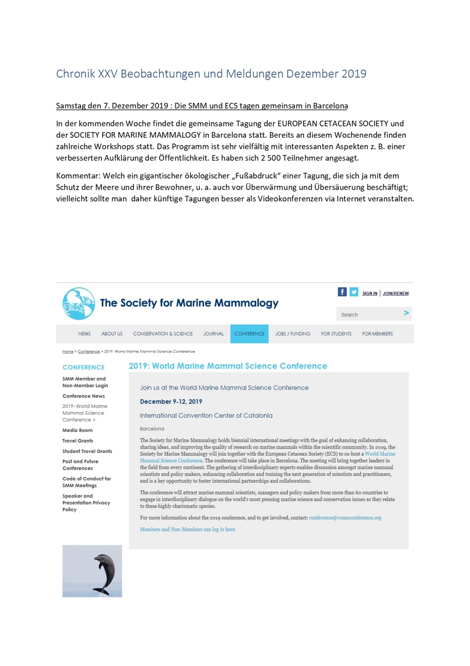 Chronik XXV Beobachtungen und Meldungen Dezember 2019 - Schweinswale