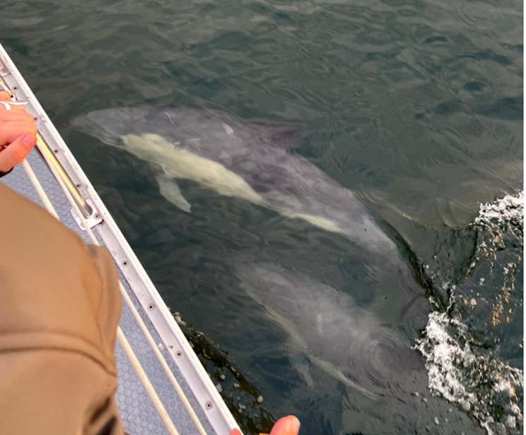 „Ich tippe auf Weißseitendelfin, was meint ihr?“