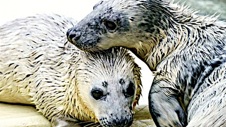 2 junge Kegelrobben Halychoerus grypus (Fabricius, 1791) sog „Heuler“ von der Helgoländer Düne wurden ausgeflogen und befinden sich nun in der Seehundstation Friedrichskoog.