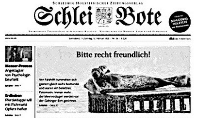 Am Freitag wurden auf der Plattform mehrere Seehunde beobachtet über die der Schleibote des shz am 11. Februar auf der Titelseite berichtet.