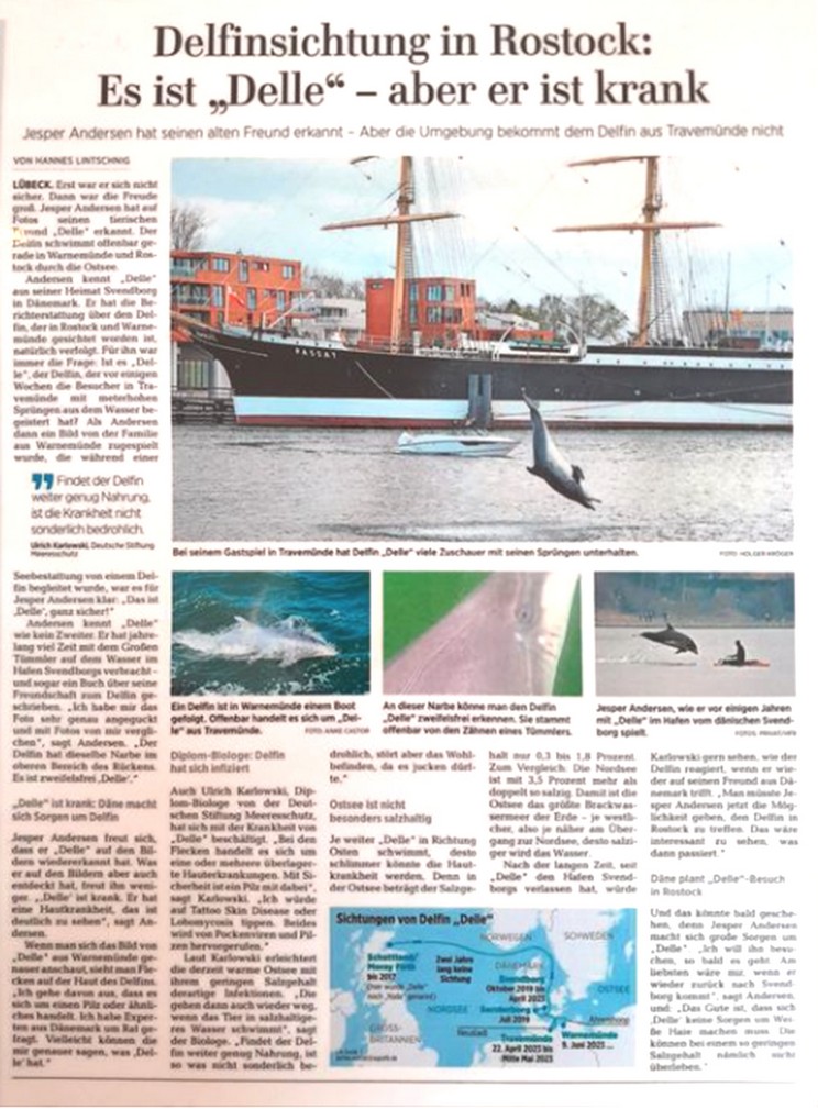 Freitag 18. August 2023: Lübecker Nachrichten Artikel über „Delle“ Der Svenborger Jesper Andersen hat ihn wiedererkannt