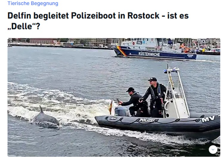 Wie die Lübecker Nachrichtenberichten begleitete am gestrigen Tag ein Gr. Tümmler das Schlauchboot der Polizei. Man vermutet, es könnte sich um „Delle“ handeln, der ursprünglich als „Yoda“ in schottischen Gewässern beheimatet, seit 2019 im Svendborg Sund und später Travemünde begeistert hat.