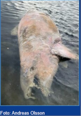 *Es handelt sich um den männlichen Schwertwal, der zwischen 14. Und 16.Mai 2023 bei Smögen vor der schwedischen Kattegatküste mehrfach beobachtet wurde und dann unter dramatischen Umständen in der Marina Hunnebro strandete. Er war 680 cm lang, starkabgemagert und hatte abgenutzte Zähne. (s. auch 71, Chronik XXXXIII)